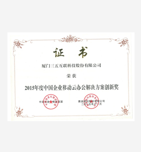 2015年度中國企業移動雲辦(bàn)公解決方案創(chuàng)新獎